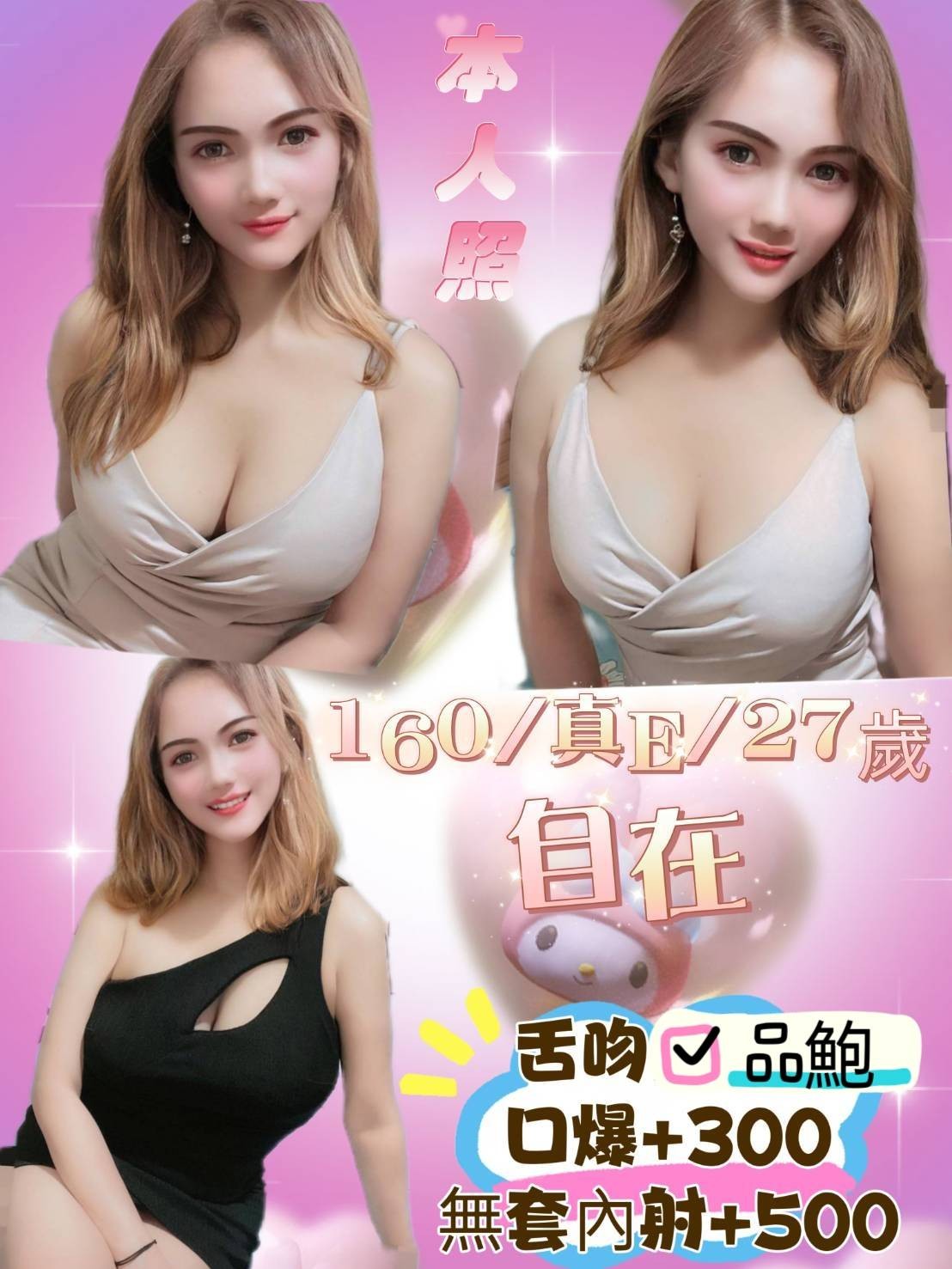 無套吹/戴套做/前後澡/品鮑/69/舔蛋/奶炮/胸推/屁推/按摩/親嘴/舌吻
