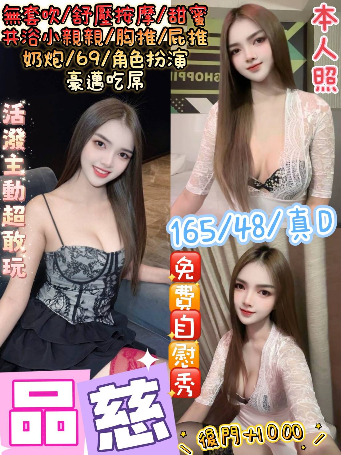 👍項目:無套吹/甜蜜共浴/按摩/角色扮演/親親/69/品鮑/胸推/屁推/奶炮/深喉嚨/水中蕭/舌吻
